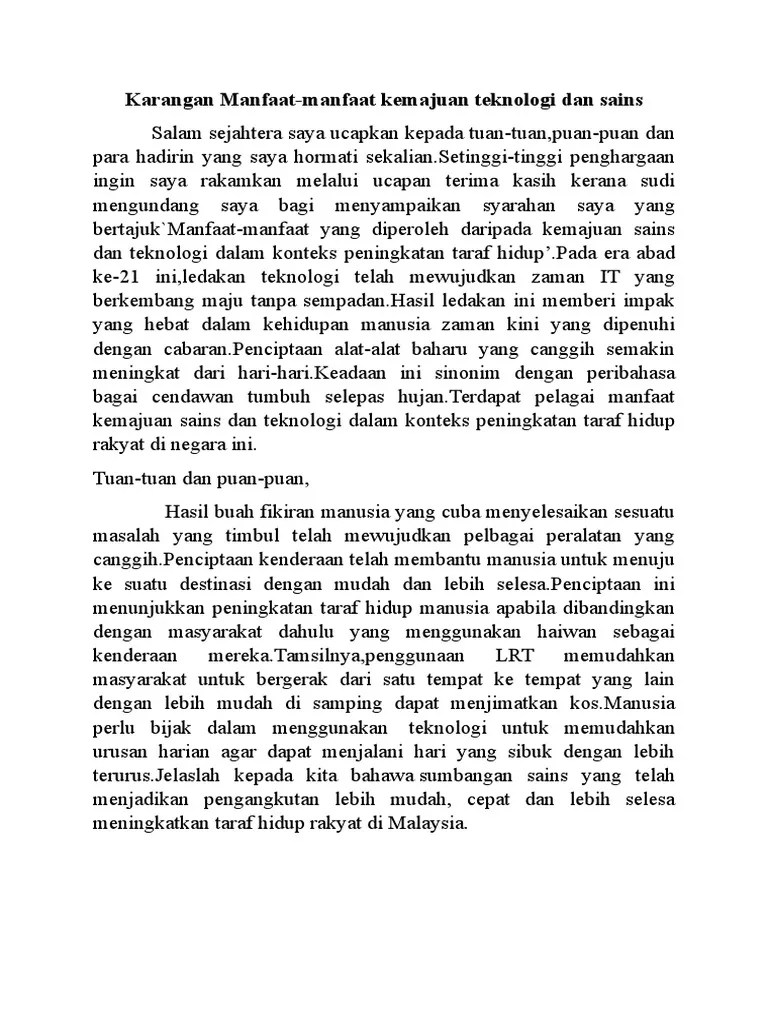 Contoh karangan kebaikan/ pentingnya sains dan teknologi dalam .